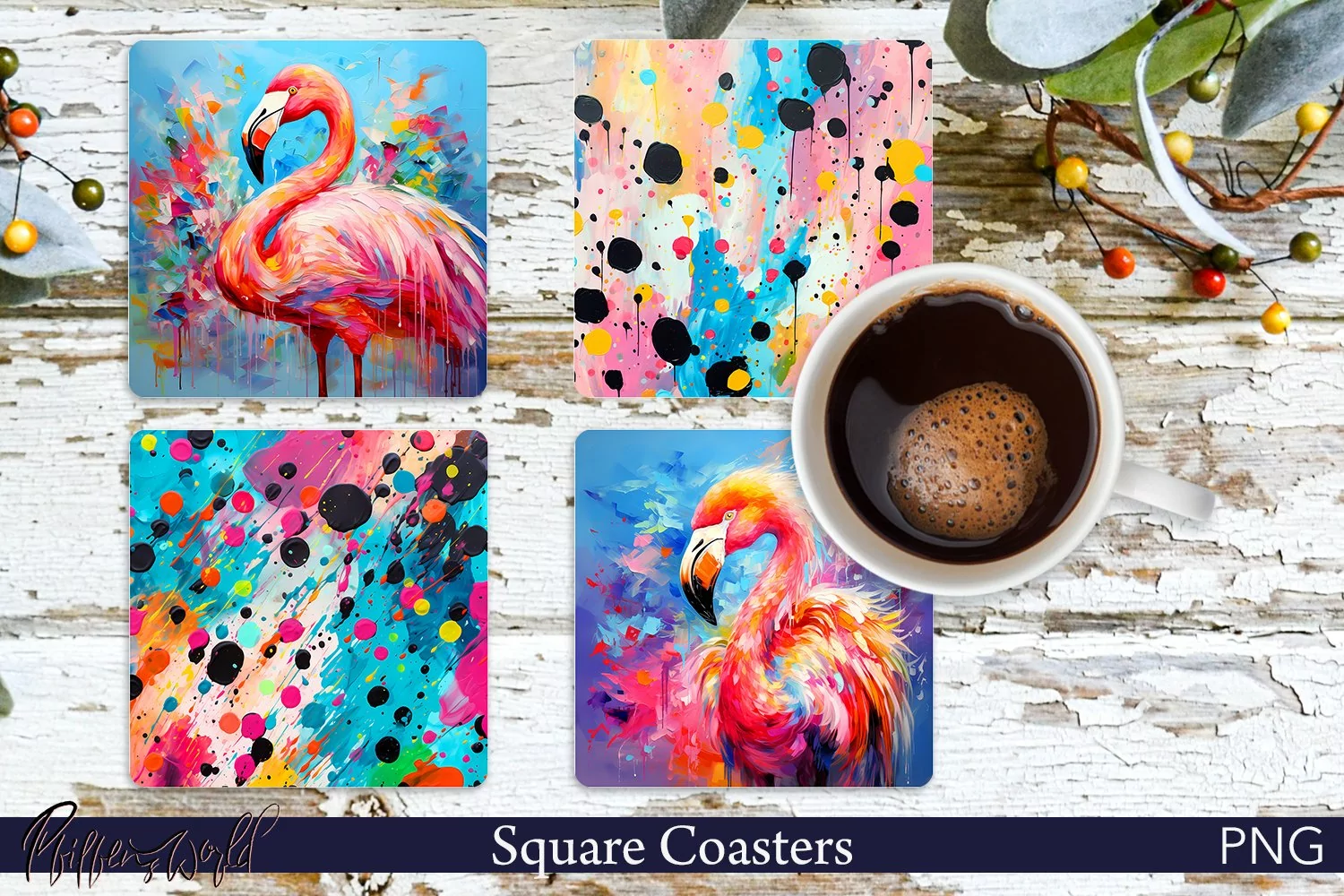 Square Coasters | Pink Flamingo | Colorful Designs example image 1