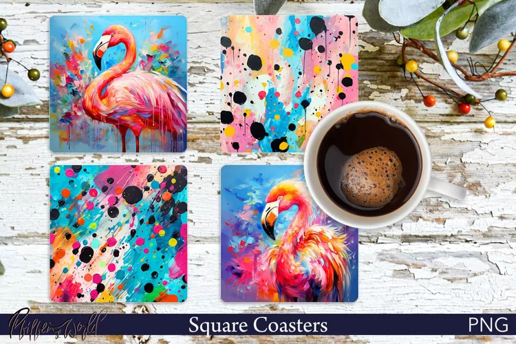 Similar Design Products to Square Coasters | Pink Flamingo | Colorful Designs