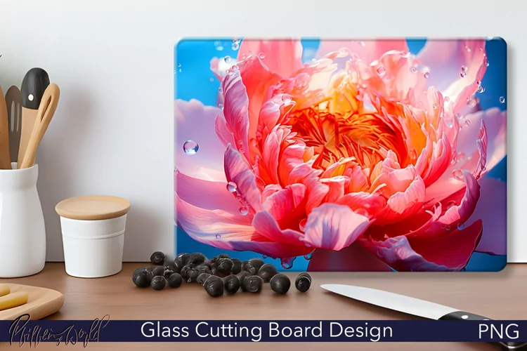 Glass Cutting Board Design | Colorful Peony