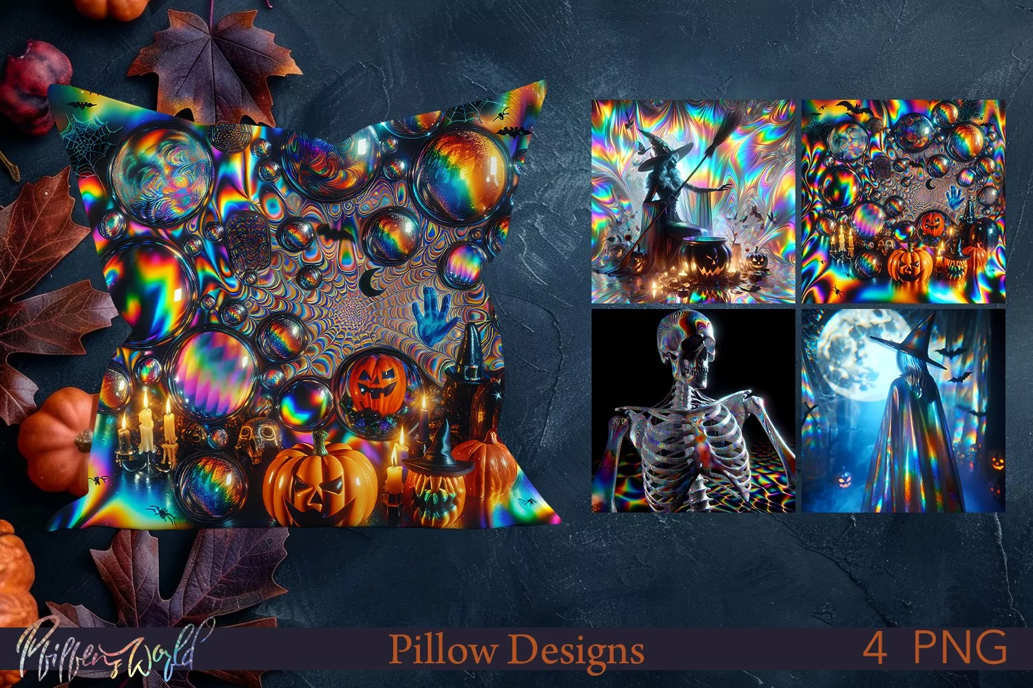 Halloween Pillow | Holographic Design | Witch and Pumpkins example image 1