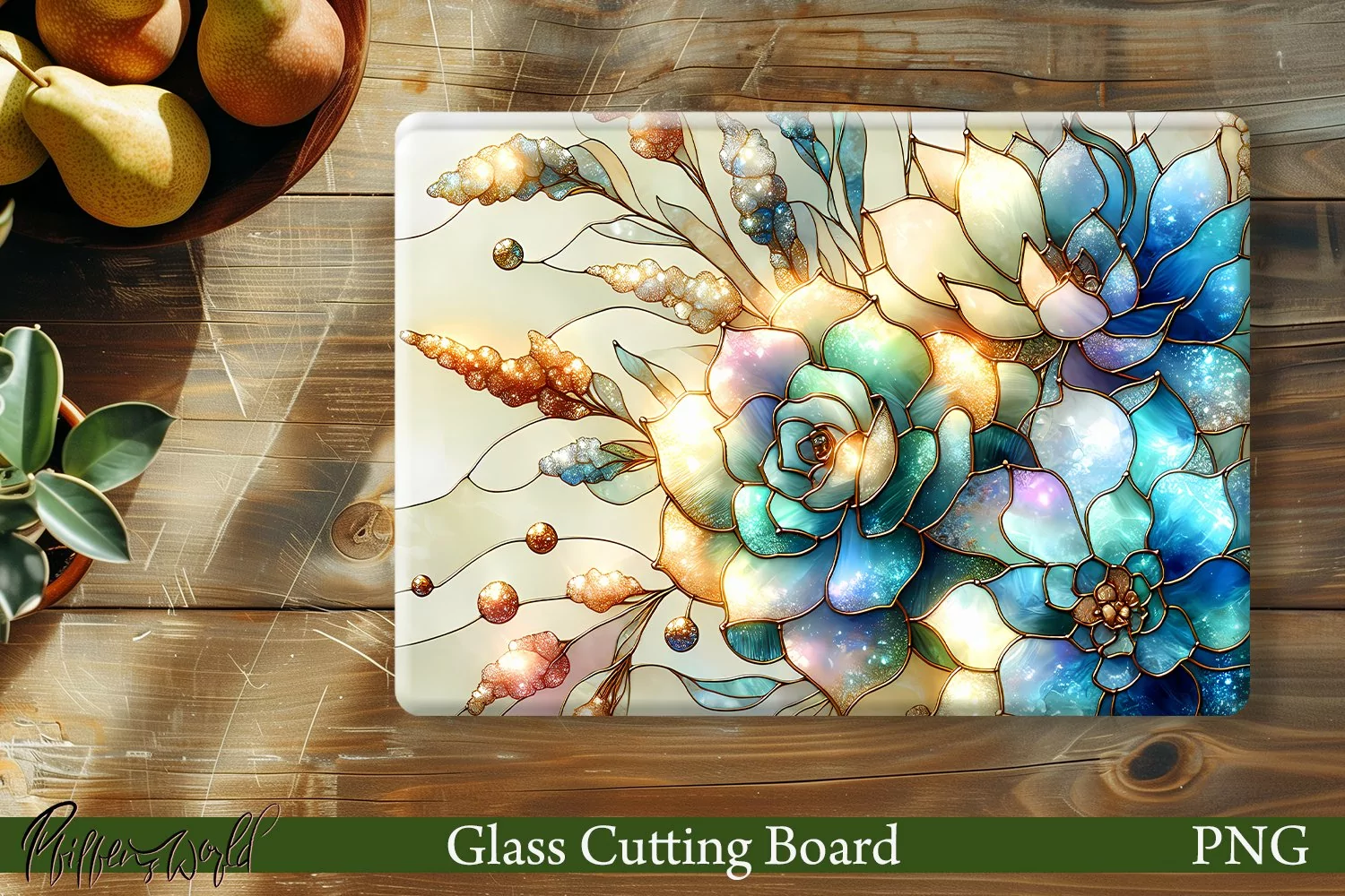 Floral Glass Cutting Board Design | Succulents