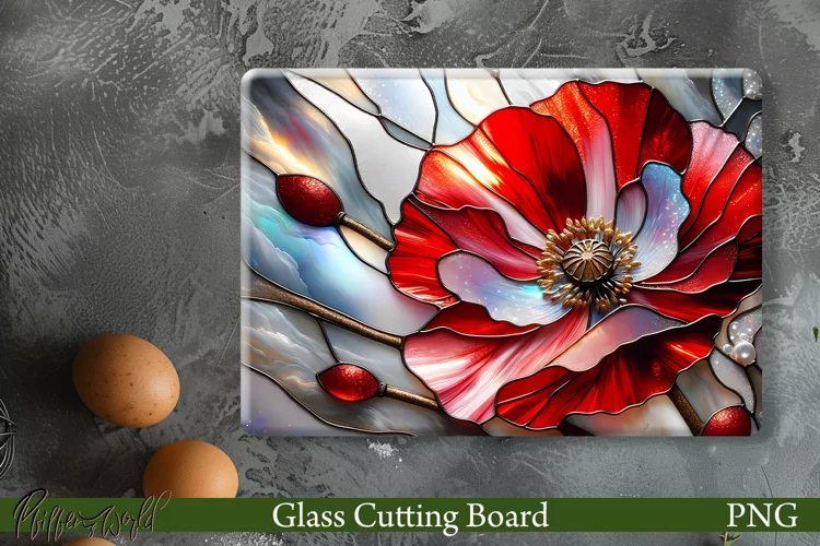 Glass Cutting Board Design | Beautiful Red Poppy