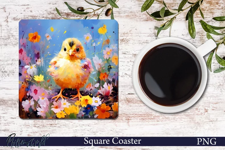 Chick Square Coaster | Happy Easter