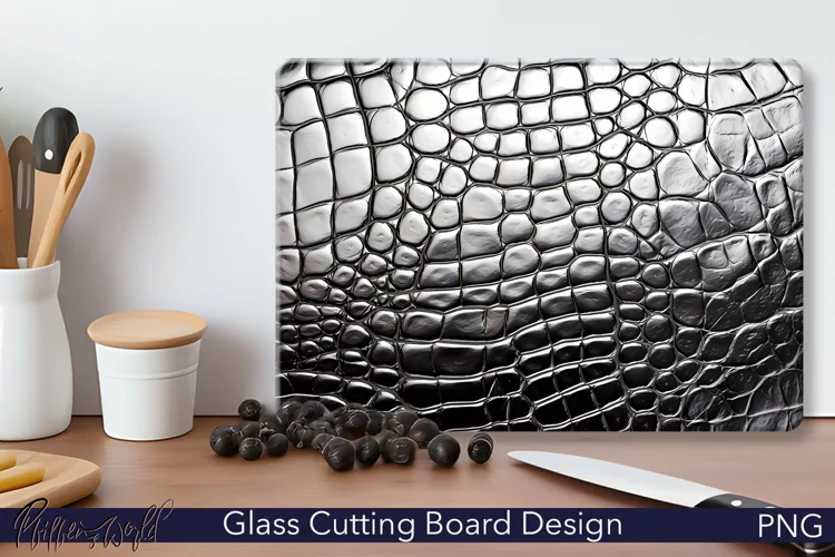 Leather Cutting Board Design | Silver Crocodile Skin PNG