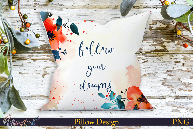 Pillow Design | Motivational Quote | follow your dreams example image 1