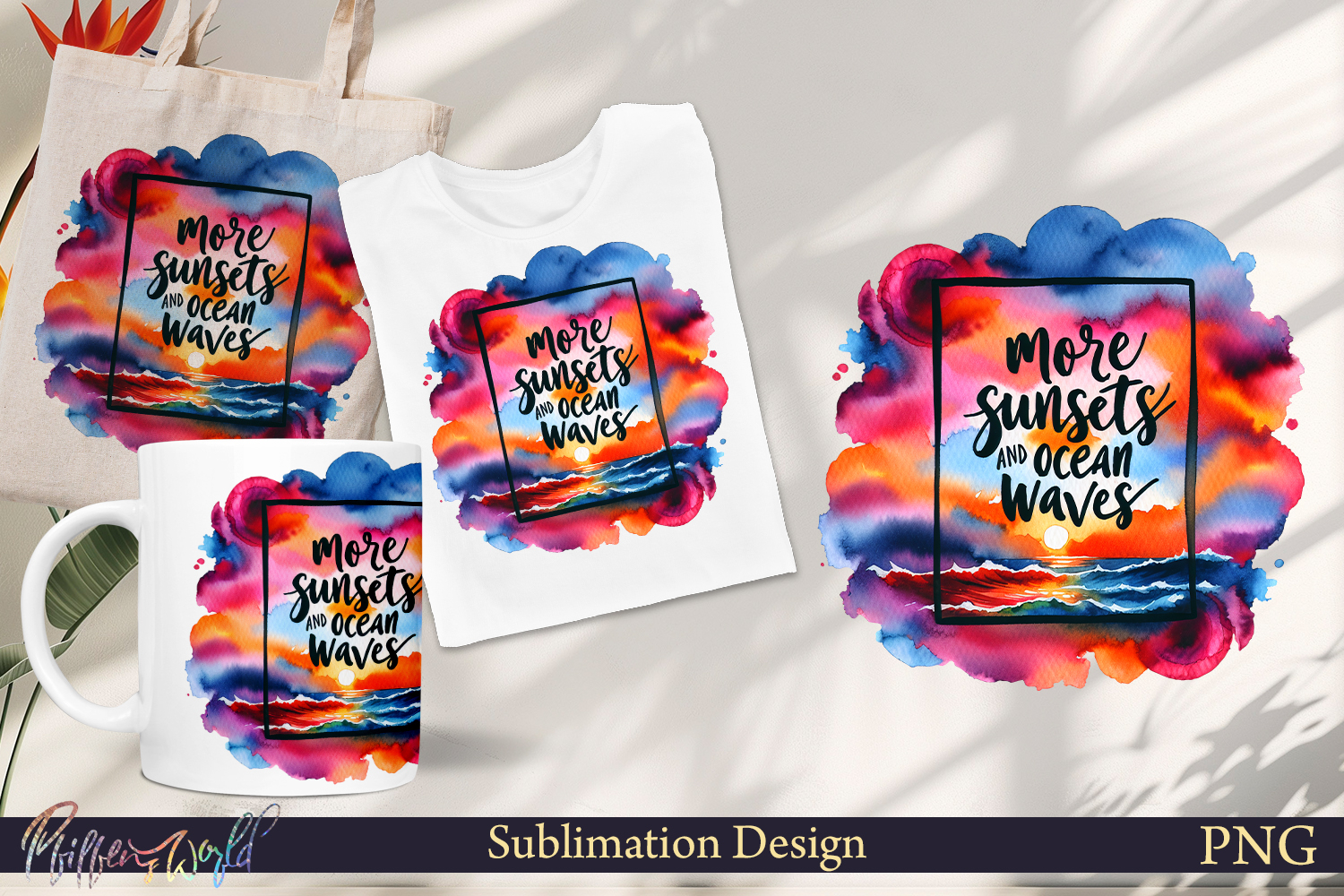 Beach Sublimation design. Use this design to create your favorite things: T-shirts, banners, mugs, tote bags, greetings, social media covers and all sort of things you need.
