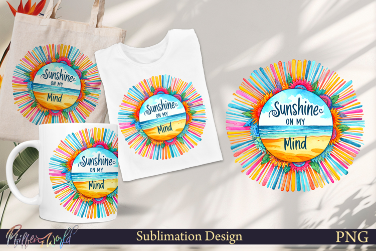 Funny Quote Sublimation | Summer | Sunshine on my mind example image 1