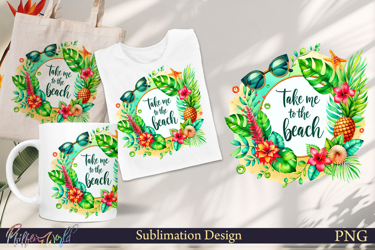 Beach Sublimation design. Use this design to create your favorite things: T-shirts, banners, mugs, tote bags, greetings, social media covers and all sort of things you need.