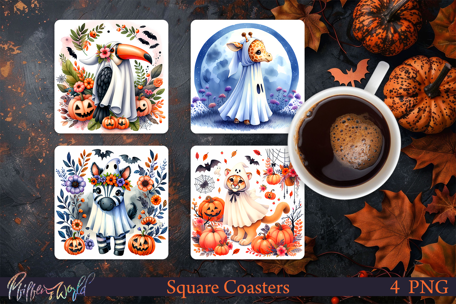 Cute Animals Halloween Monsters Halloween Ghost Halloween Animals Halloween Scene Halloween Sublimation Halloween Coaster Square Coaster Spooky But Cute Square Coaster Png