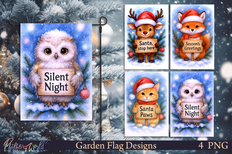 Christmas Garden Flags | Cute Animals | seasons greetings example image 1