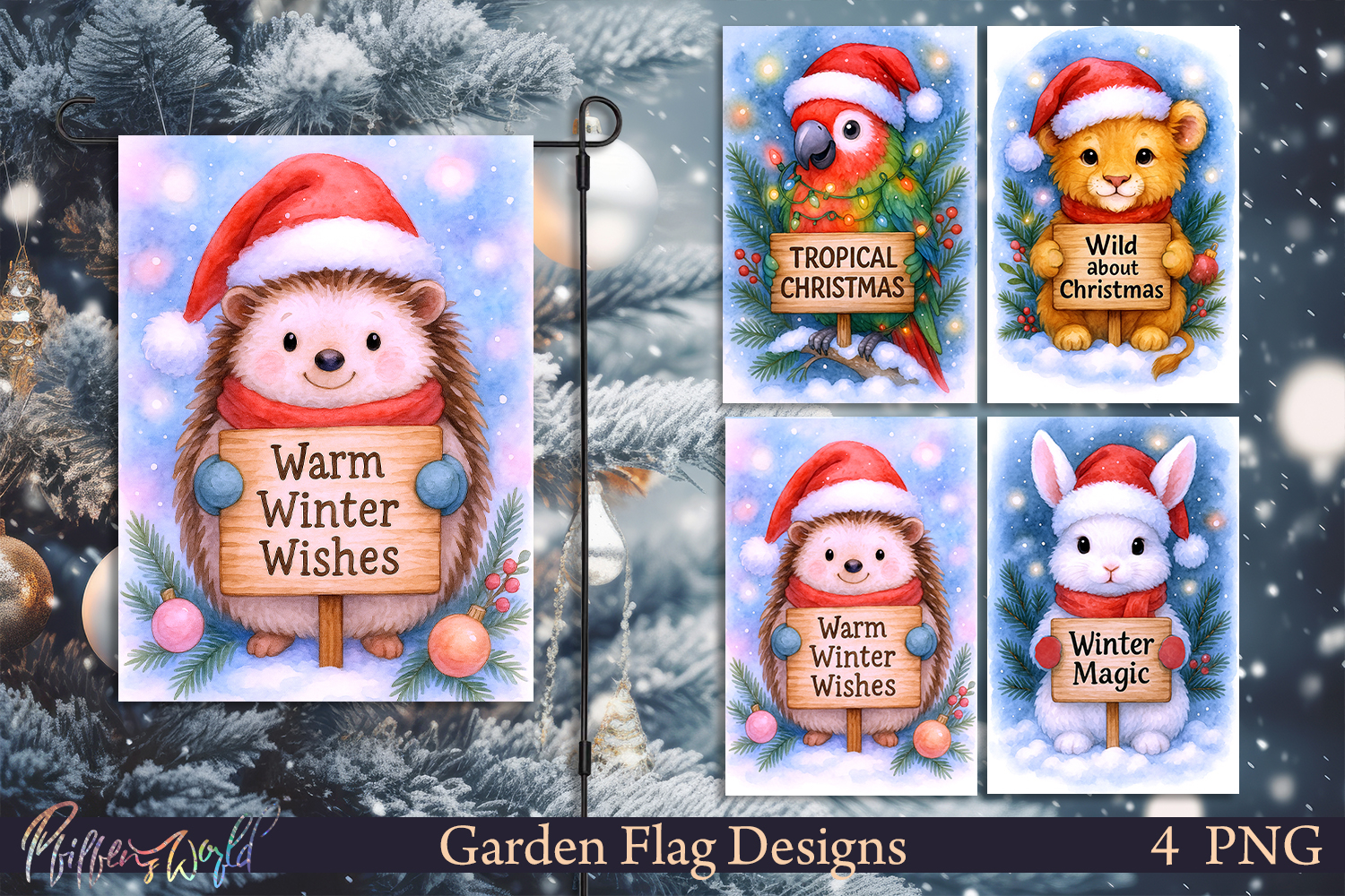 Christmas Garden Flags | Cute Animals | Winter Magic