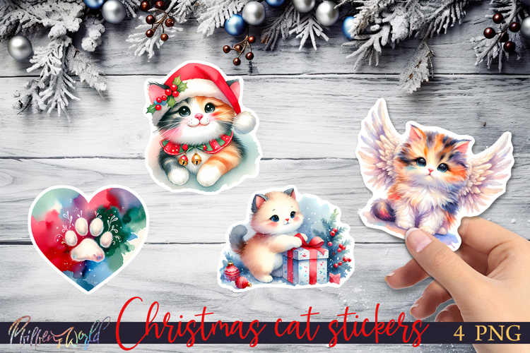 Christmas Cat Stickers. Decorate with these stickers everything you need:: gifts, notebooks, diaries, laptops, phone cases and so on.