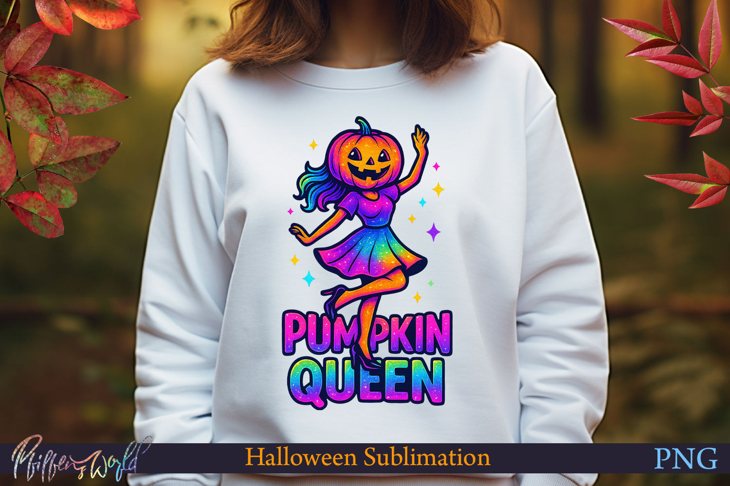 Neon Halloween Sublimation Design | pumpkin queen example image 1