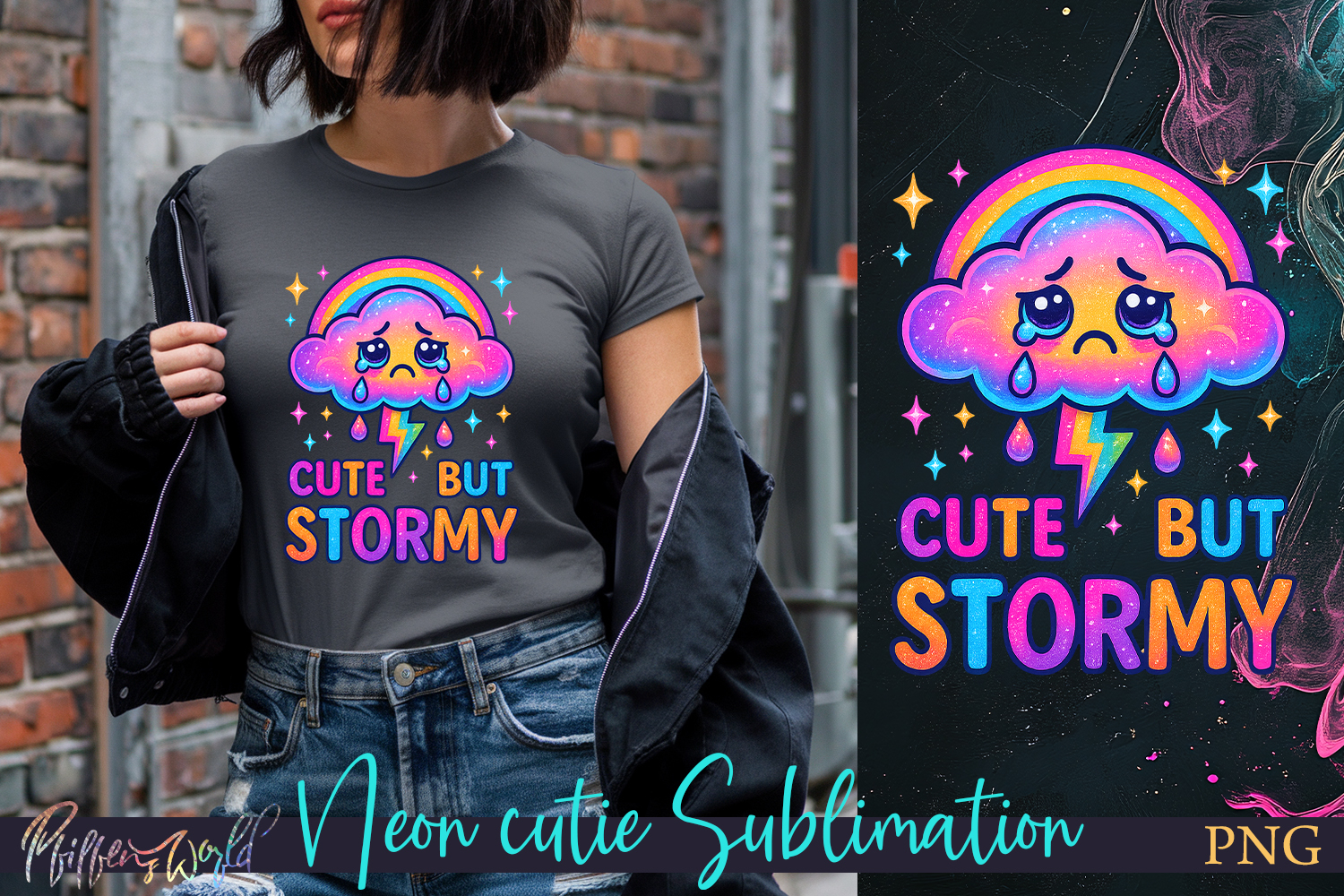 Sublimation Neon Cutie | Funny Quote | cute but stormy example image 1