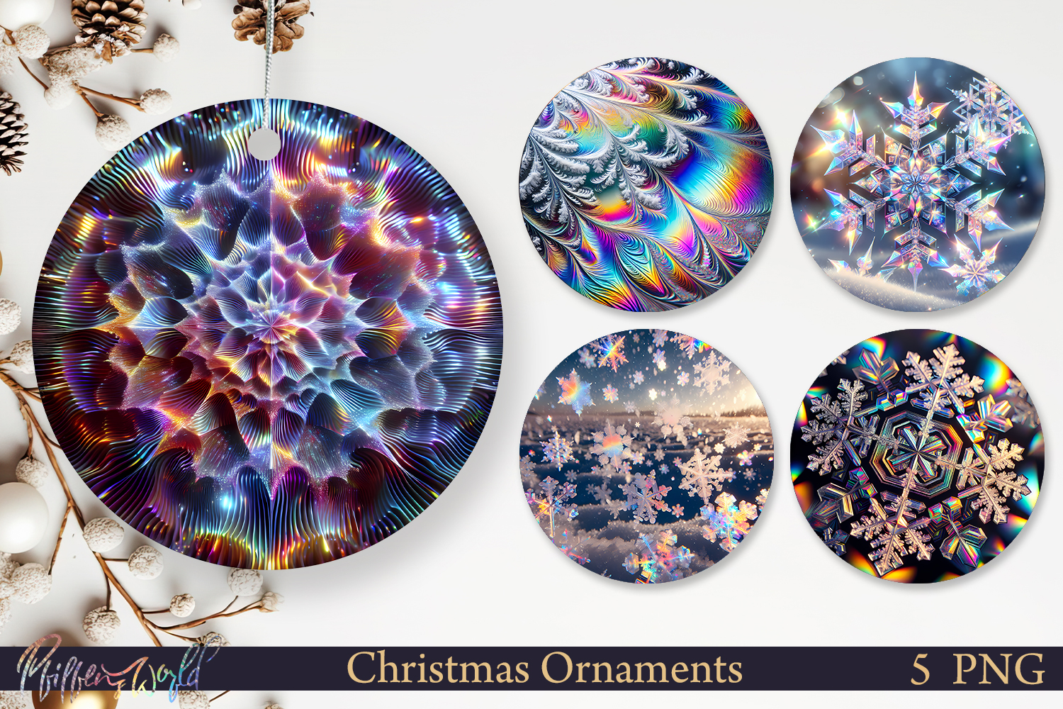Holographic Christmas Ornaments | Magical Snowflakes example image 1