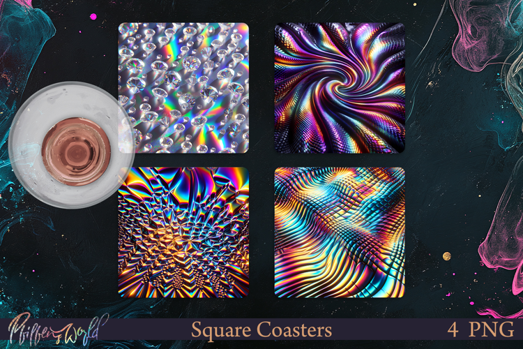 Holographic Square Coasters | Sparkling Patterns example image 1