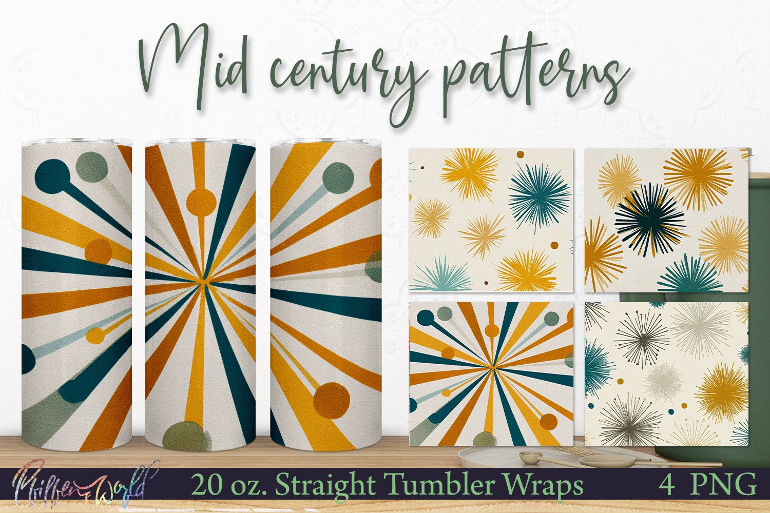 Retro Tumbler Wraps | Mid Century starburst & atomic sunray