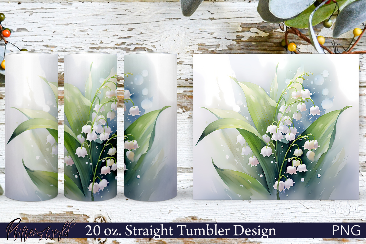 Flowers Tumbler Wrap | 20 oz. | lilies of the valley example image 1