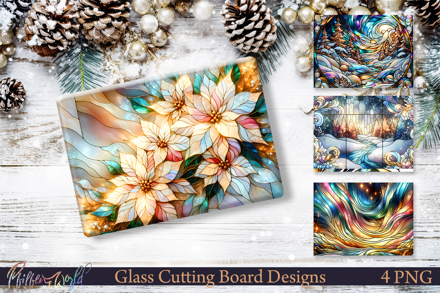Elevate your holiday kitchen and home decor with this elegant Glass Cutting Board Design Set inspired by stained glass artistry and festive winter florals.