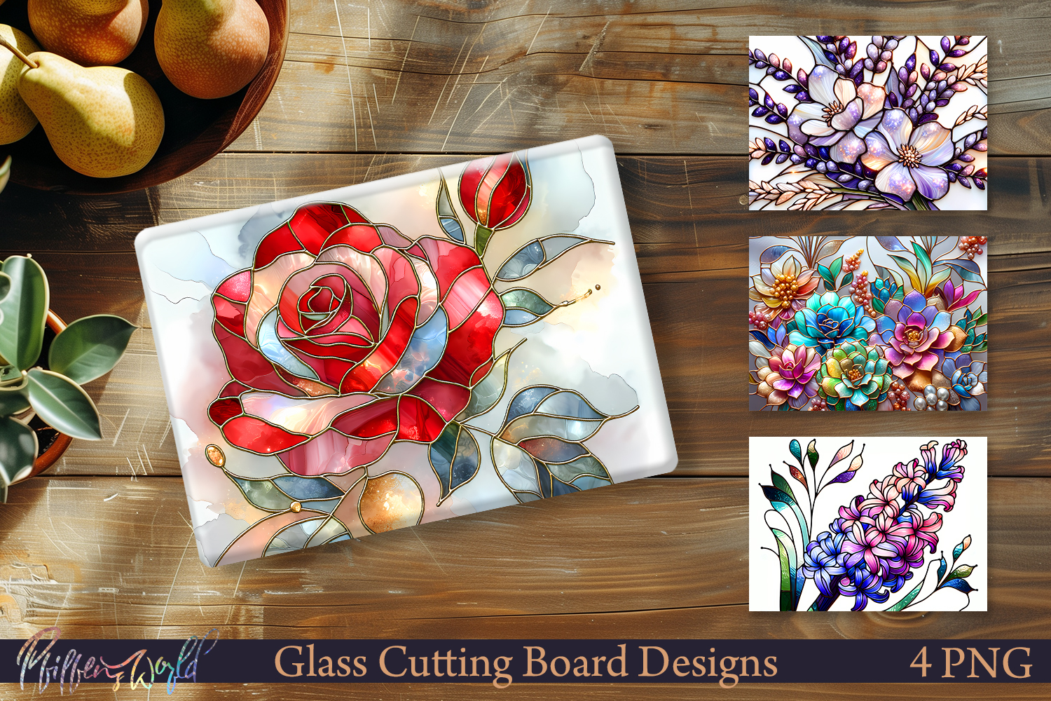 Bring timeless elegance to your kitchen decor with this Stained Glass Floral Glass Cutting Board Design Set.