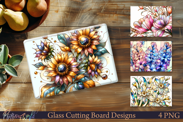 Bring timeless elegance to your kitchen decor with this Stained Glass Floral Glass Cutting Board Design Set.