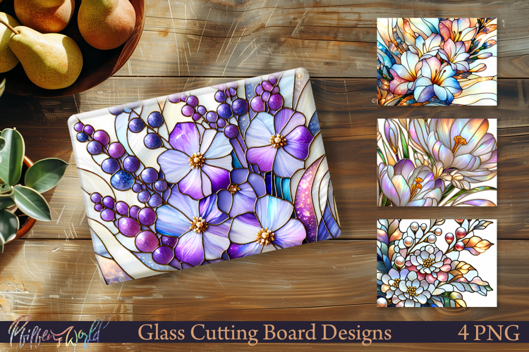 Bring timeless elegance to your kitchen decor with this Stained Glass Floral Glass Cutting Board Design Set.