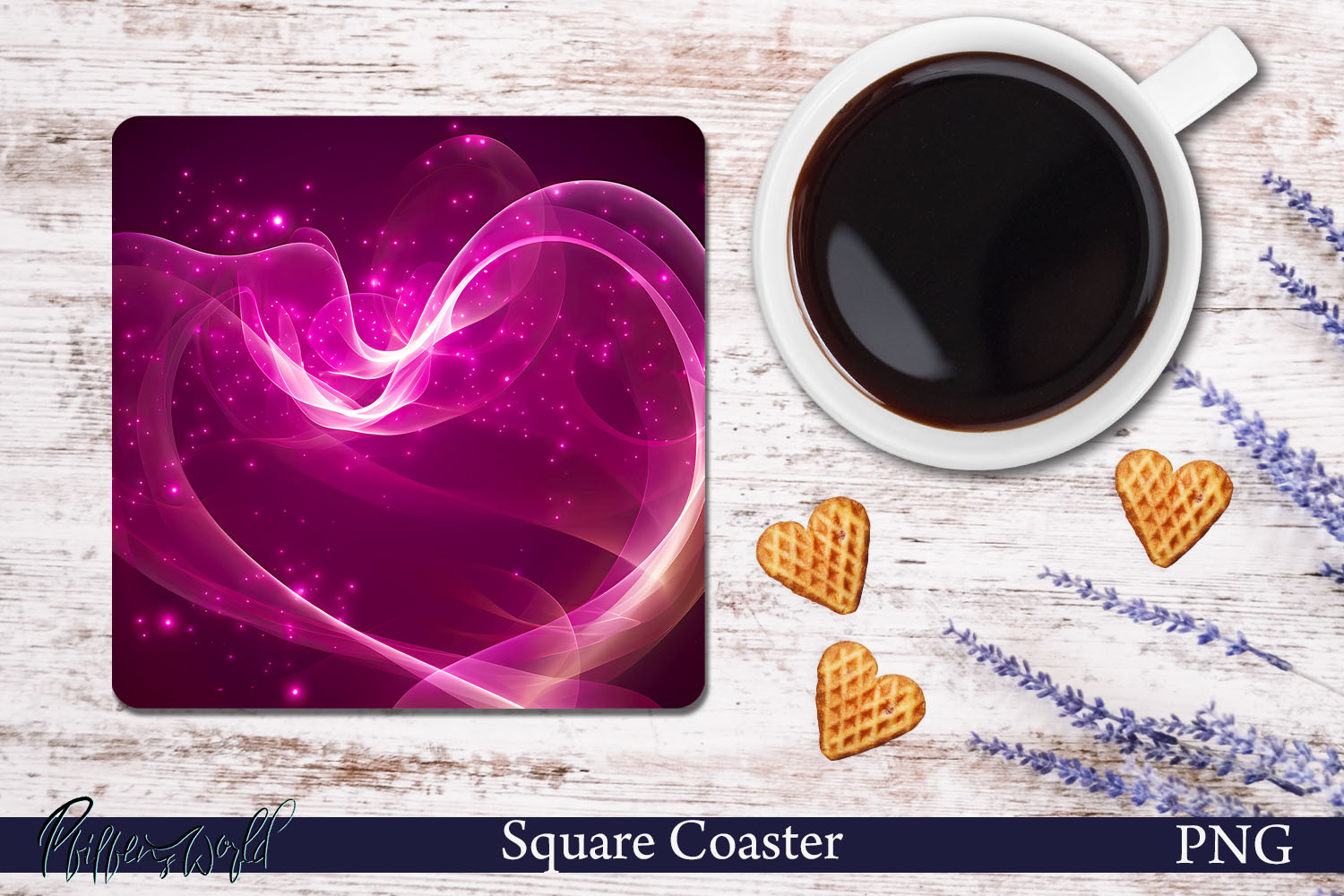 Pink Heart Square Coaster | Electric Light PNG example image 1