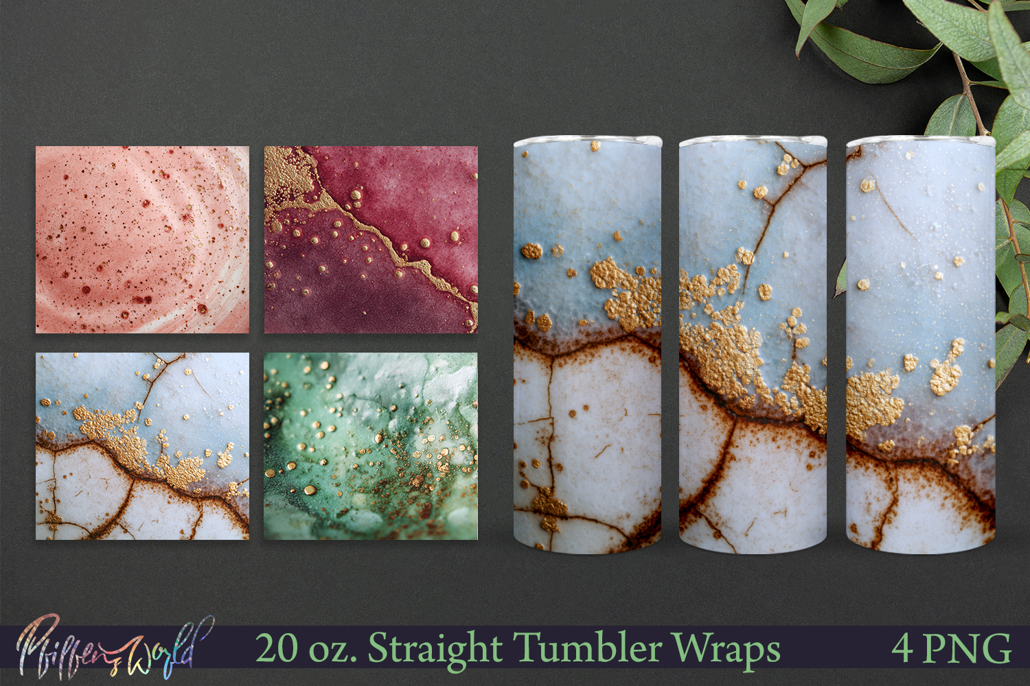 Perfect for 20 oz straight tumblers, sublimation projects, and modern handmade-style drinkware, these high-resolution PNG files capture the depth, texture, and movement of real ceramic art — without harsh stone or concrete effects.