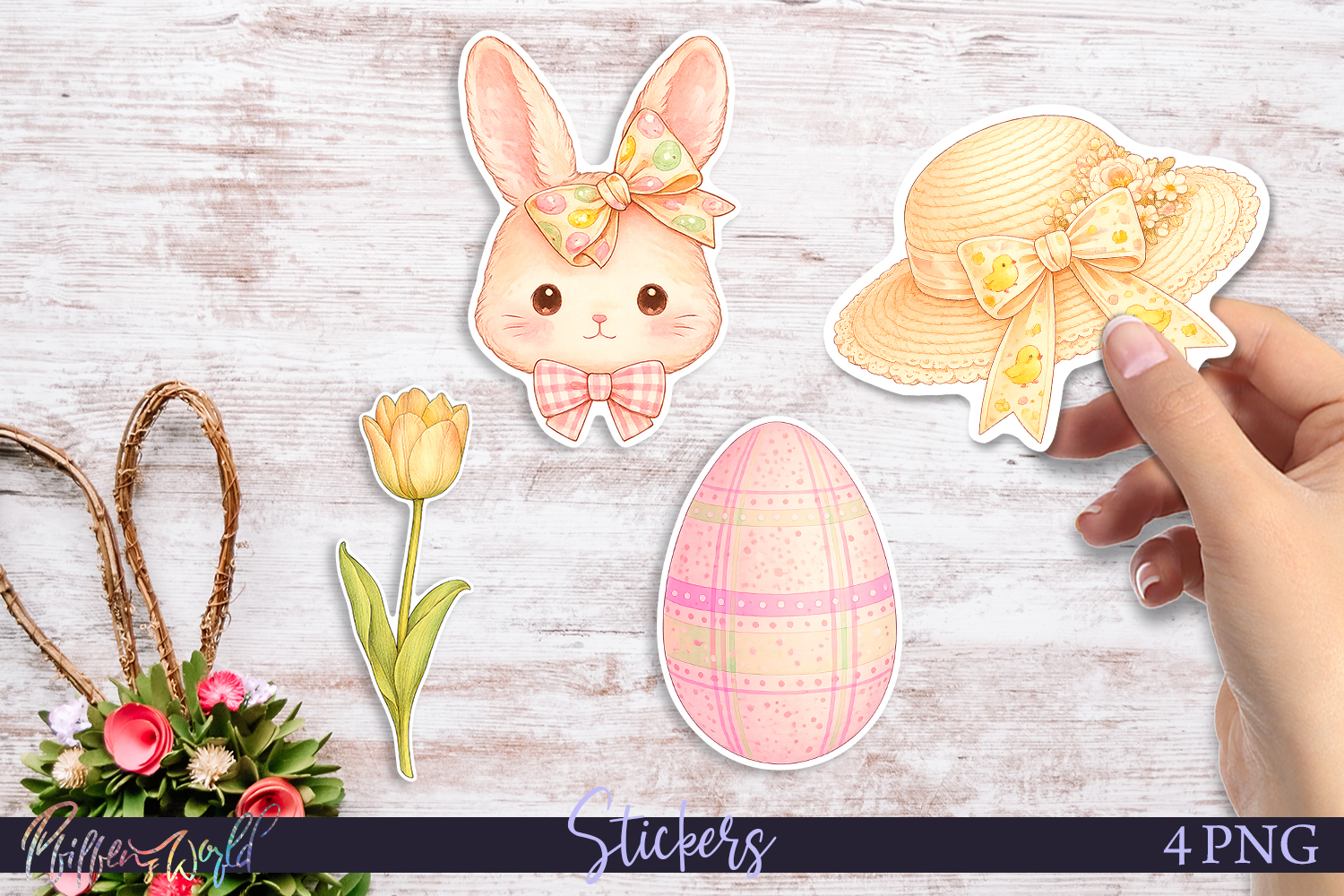 You’ll get 4 high-quality PNG sticker files with clean white borders, ready to use for print or digital designs. Ideal for Easter crafts, spring decor, and seasonal creative projects.