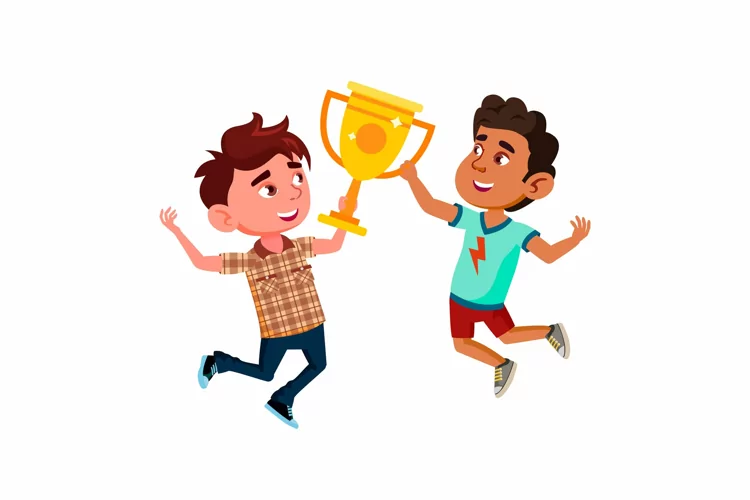 Vector Kids Boys Together Hispanic Caucasian Celebrating Victory Guys Preteen