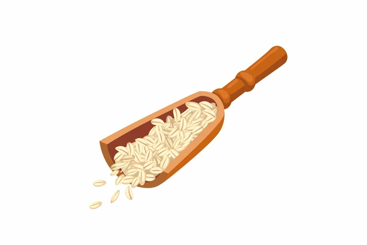 oatmeal wooden spoon cartoon. food organic, cereal ingredient, healthy white, breakfast grain, diet raw, porridge dry oatmeal wooden spoon vector illustration. Formats: JPG, EPS