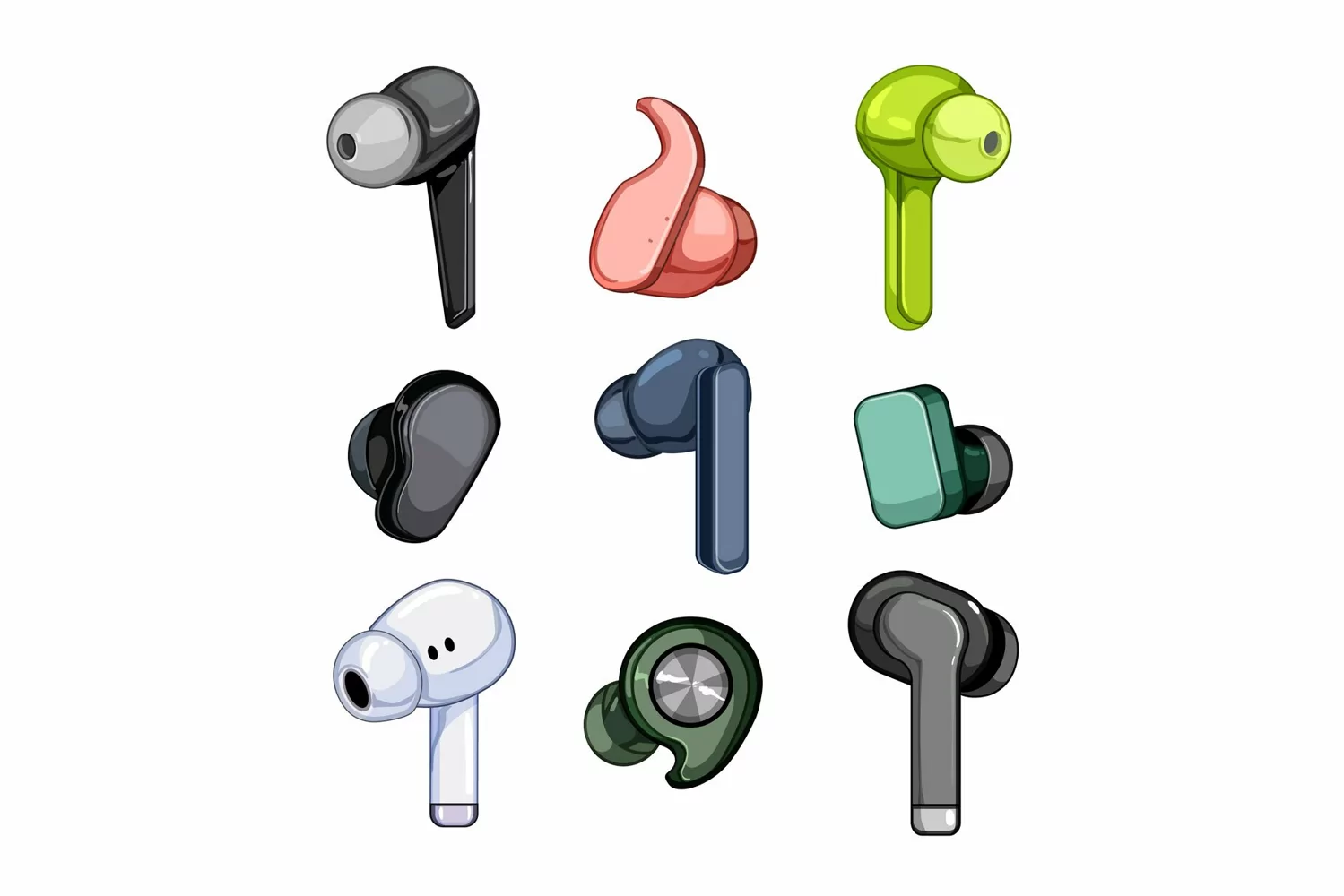 Illustration Symbol Cartoon Vector Sign Color Set Technology Wireless Earphones