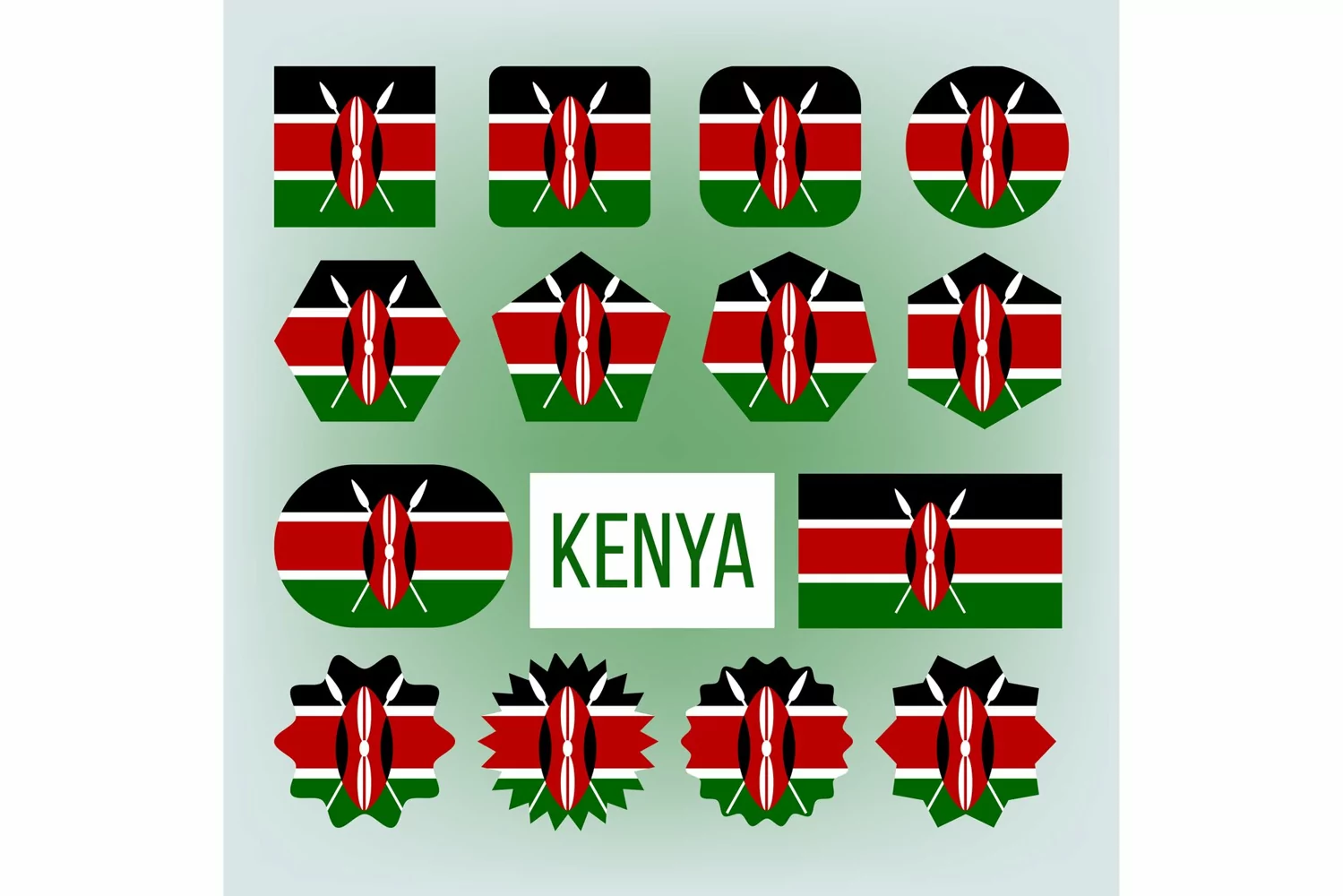 Kenya Various Shapes Vector National Flags Set example image 1
