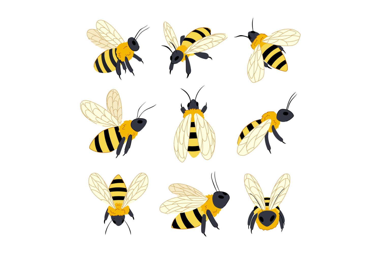 bee set cartoon. worker drone, colony apiary, beekeeping wax bee sign. isolated symbol vector illustration