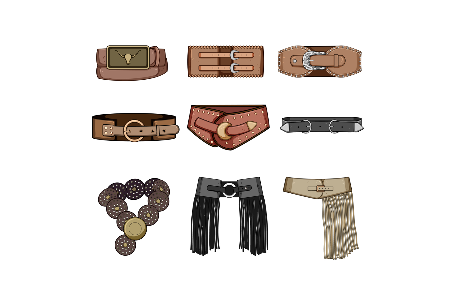 cowgirl belt set cartoon. leather buckle, rodeo fashion, style vintage cowgirl belt sign. isolated symbol vector illustration