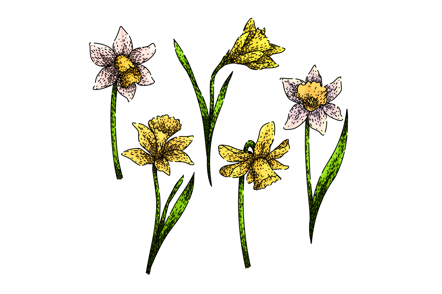 daffodil set sketch hand drawn example image 1