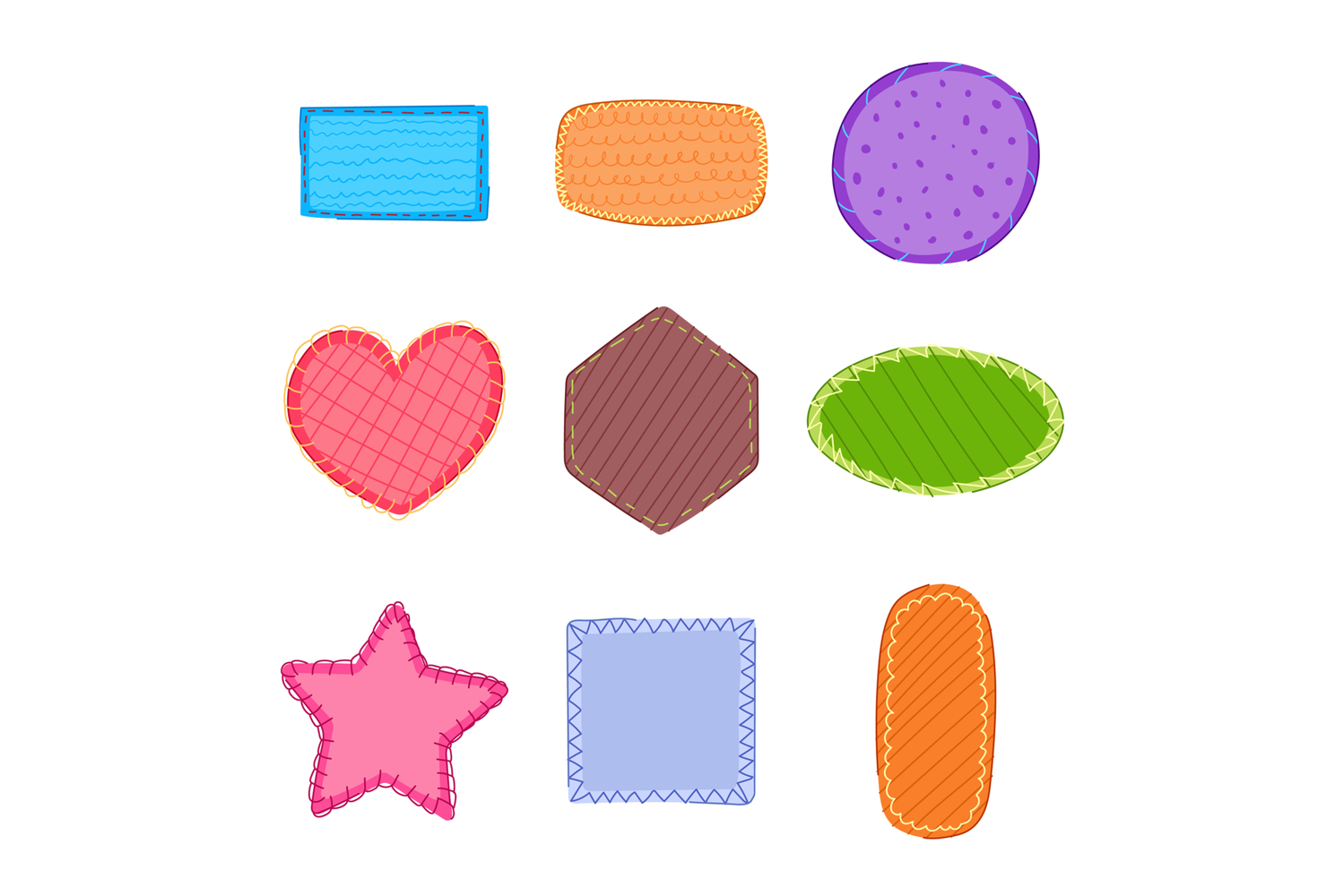 fabric patches set cartoon. custom vintage, decorative repair, badge patchwork fabric patches sign. isolated symbol vector illustration