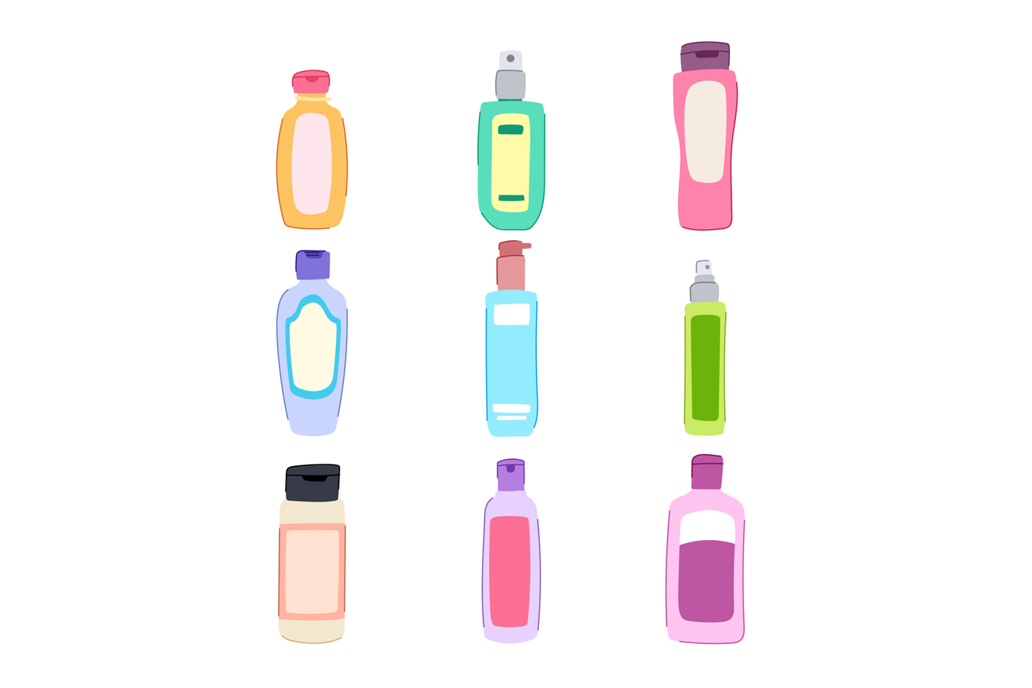 face toner set cartoon. soothing balancing, cleansing purifying, calming nourishing face toner sign. isolated symbol vector illustration