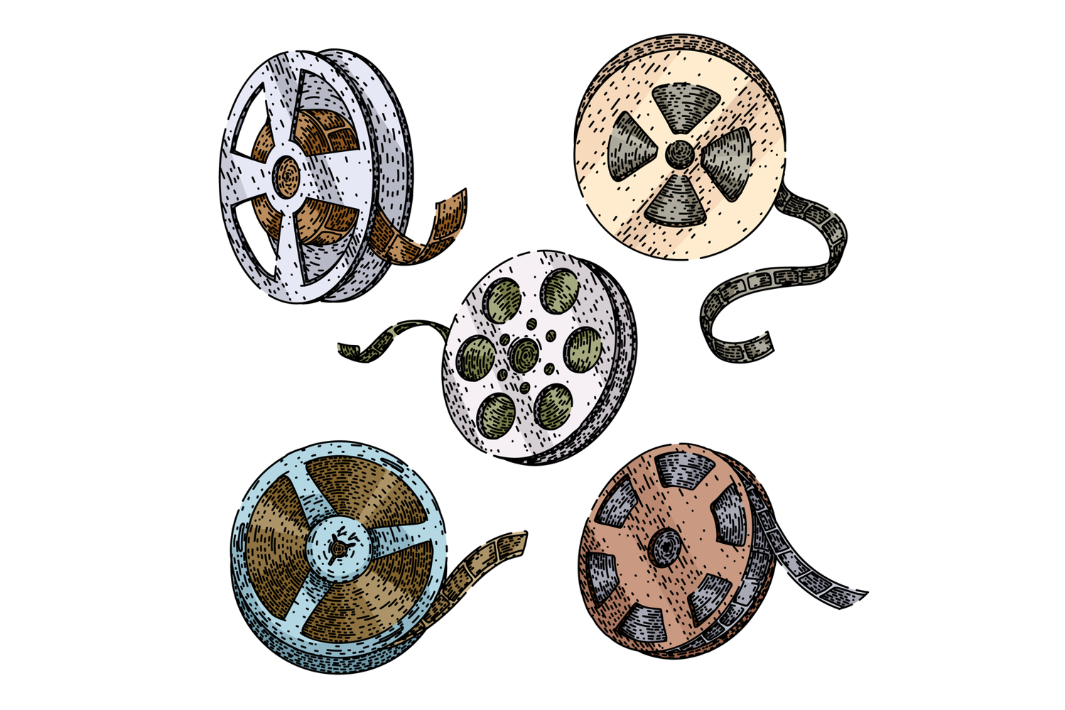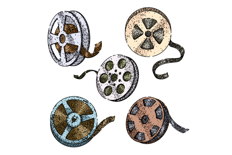film projector reel set sketch hand drawn