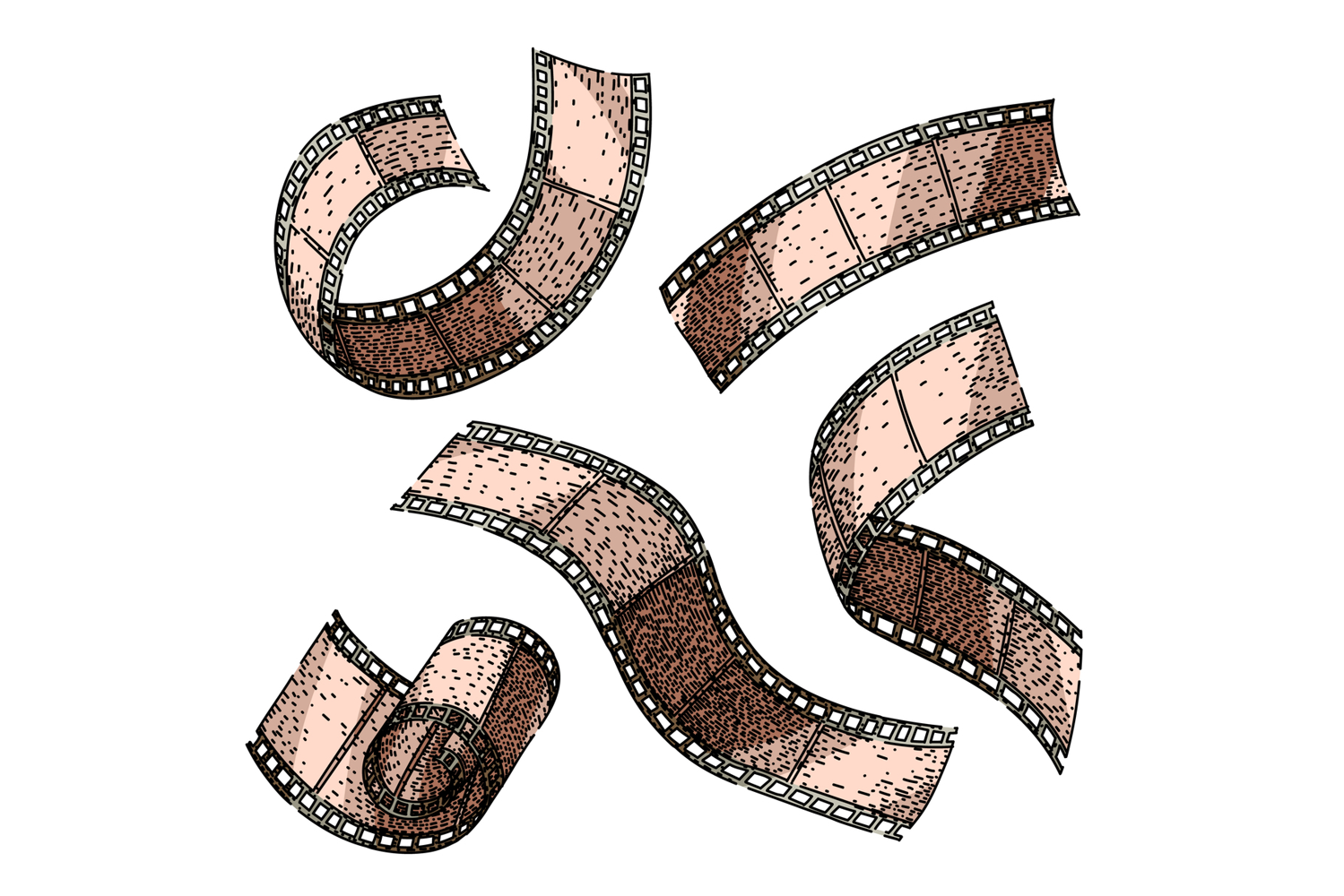 Vintage Movie Film Sketch Cinema Reel Editing Analog Projector Celluloid