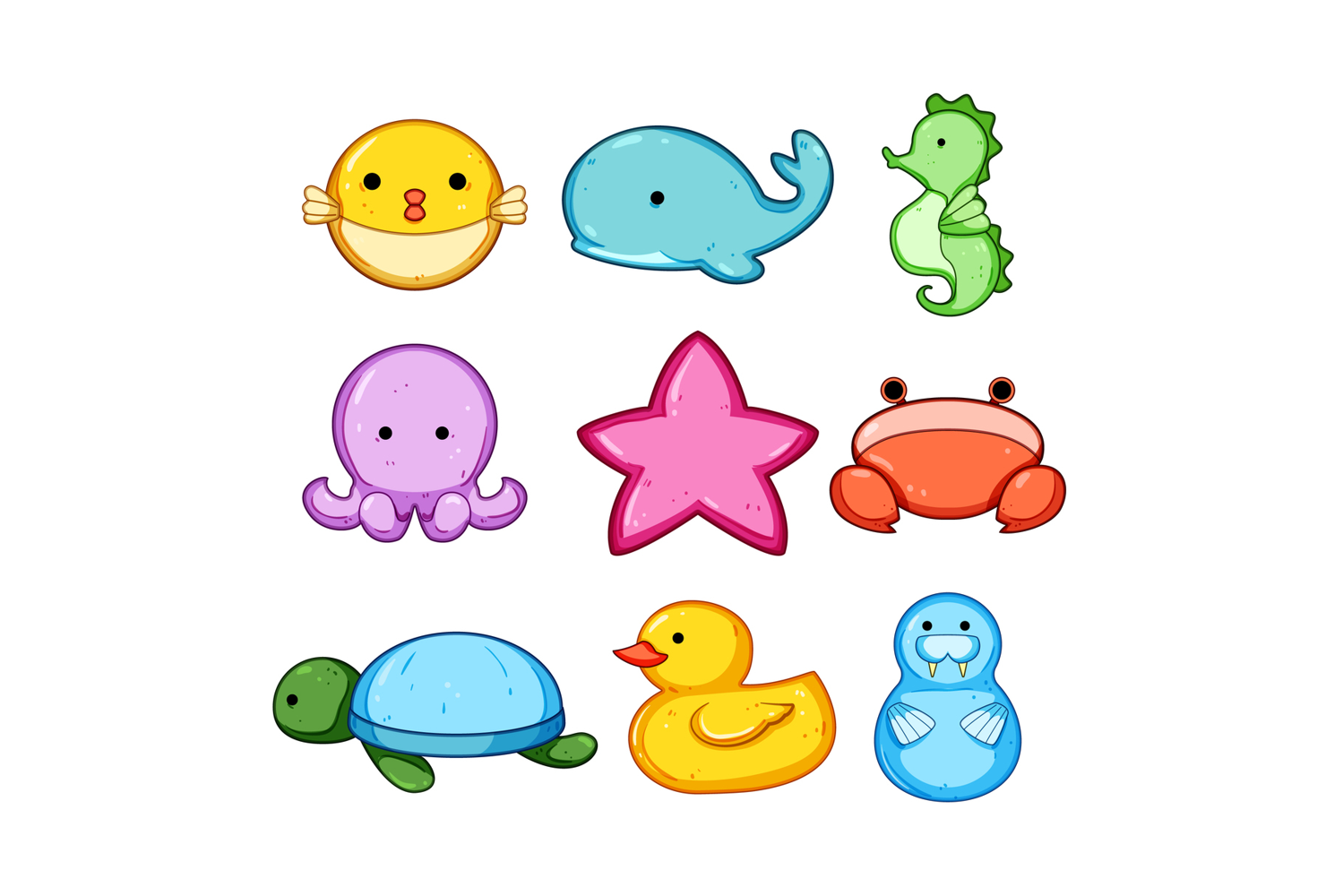 Cute cartoon assorted sea creatures and rubber duck example image 1