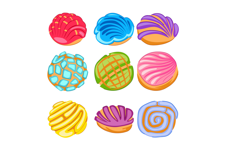 Mexican sweet concha bread collection colorful illustration example image 1