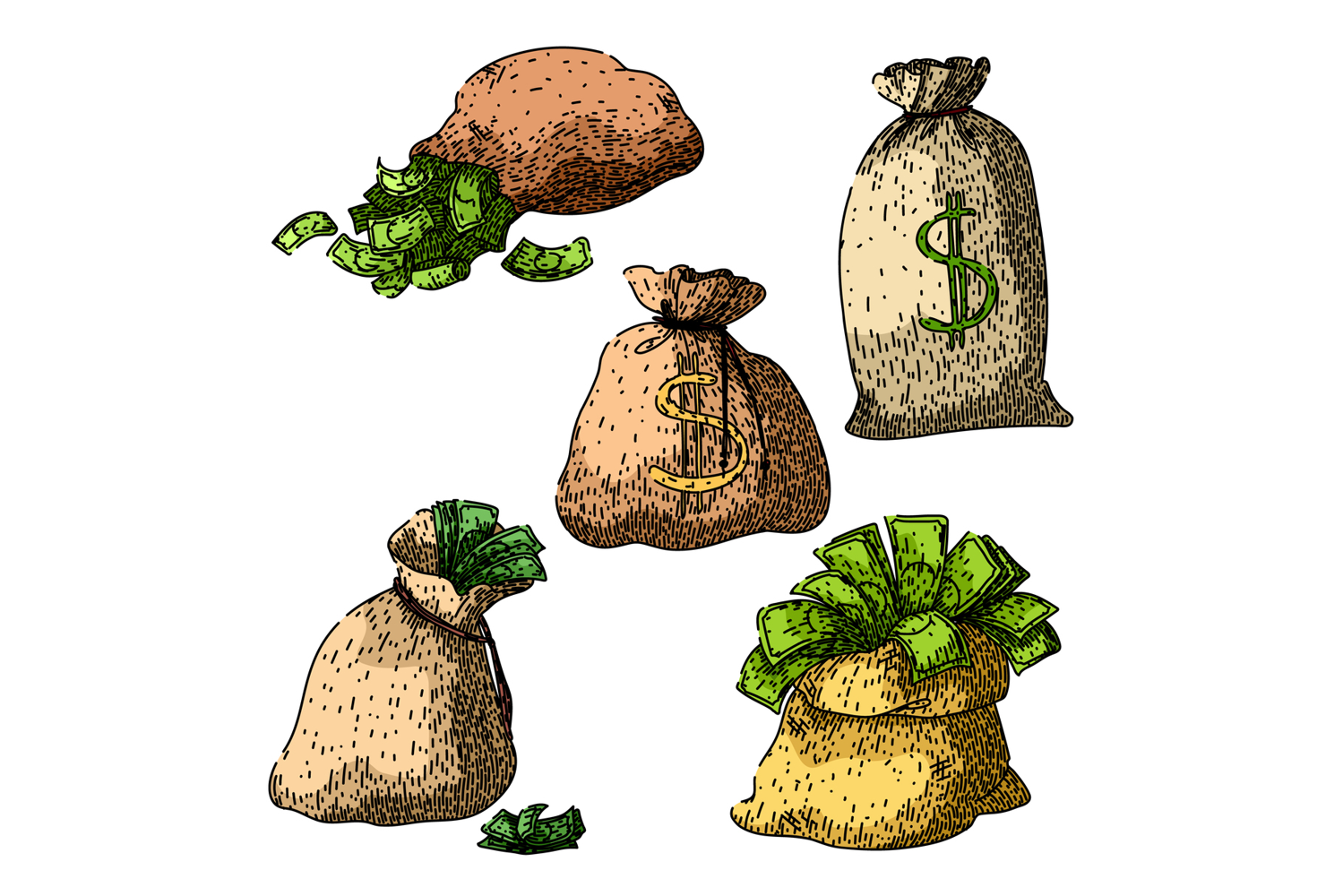 money bag set sketch hand drawn