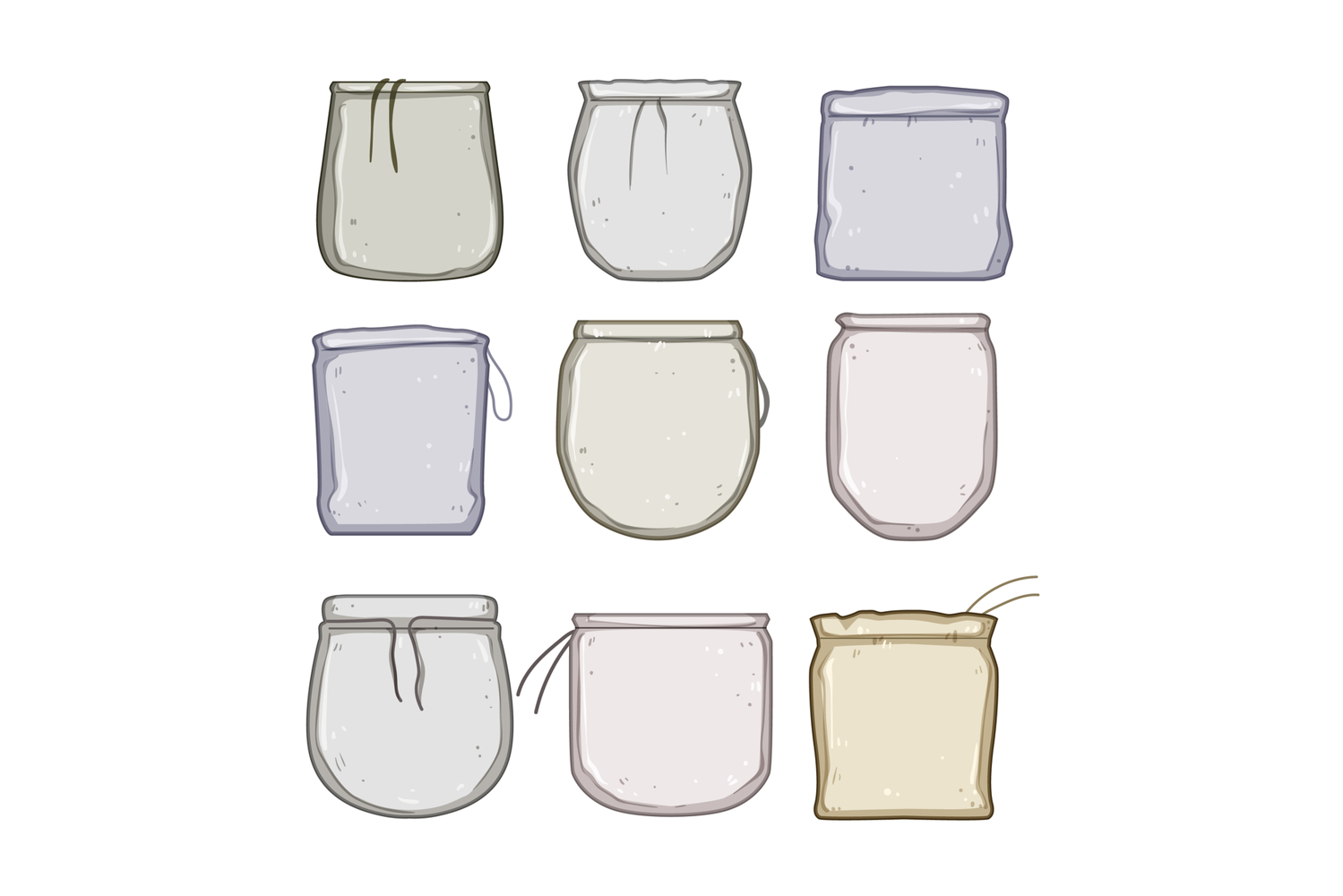 nut milk strainer bag set cartoon. organic mesh, filter almond, hemp cashew nut milk strainer bag sign. isolated symbol vector illustration