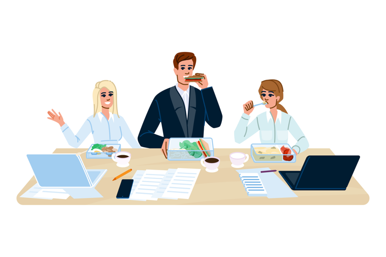 Character Flat Food Office Meal People Lunch Chat Break Colleagues