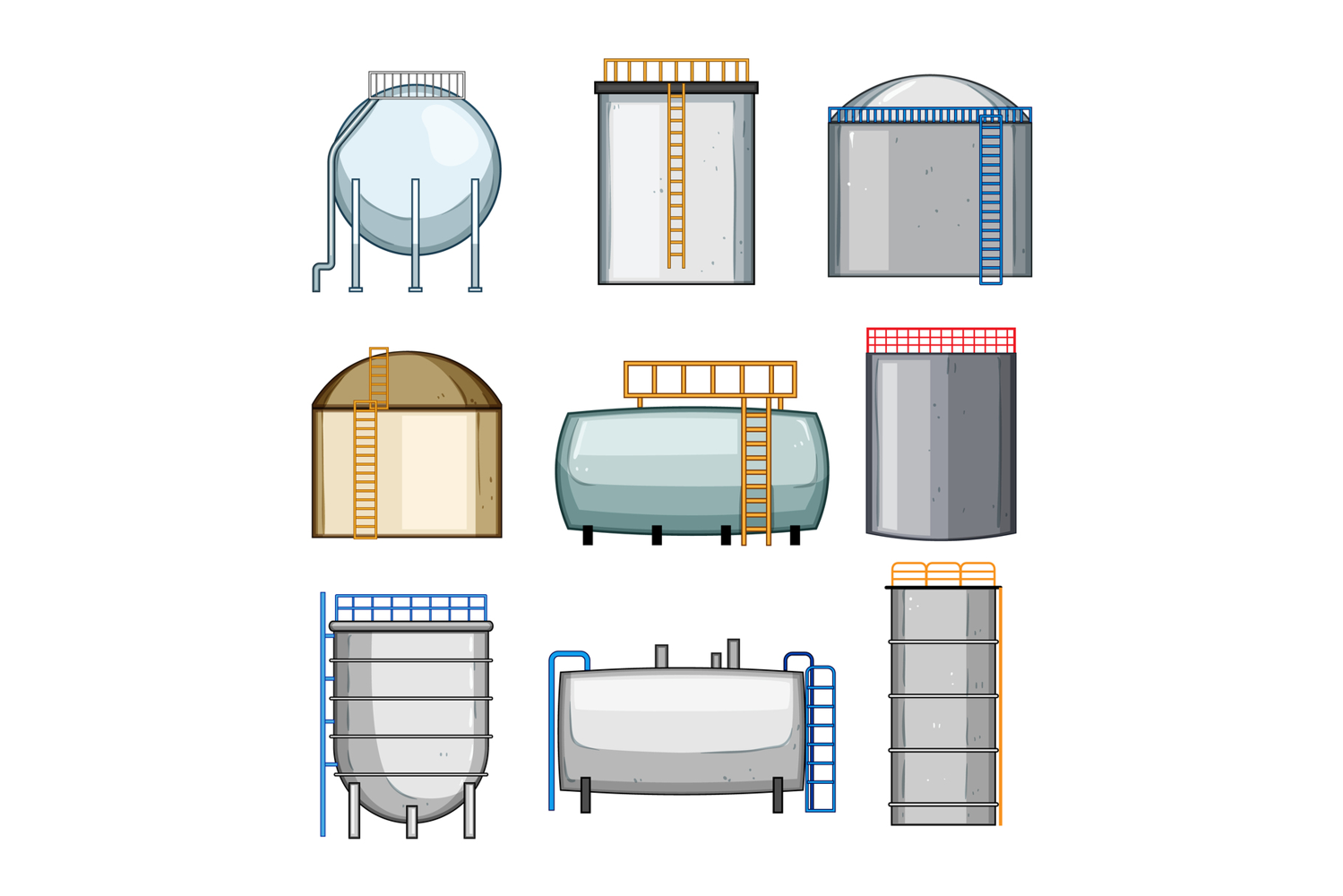 oil tank storage set cartoon. terminal inventory, containment infrastructure, logistics refinery oil tank storage sign. isolated symbol vector illustration
