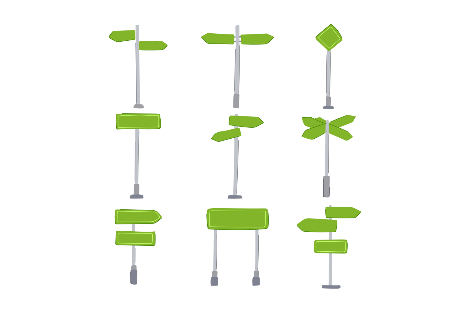 street sign green set cartoon