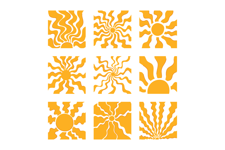 sun groovy set cartoon. radiant bright, solar light, summer glow sun groovy sign. isolated symbol vector illustration