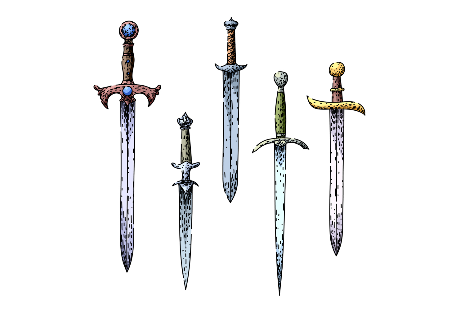 sword medieval set sketch hand drawn example image 1