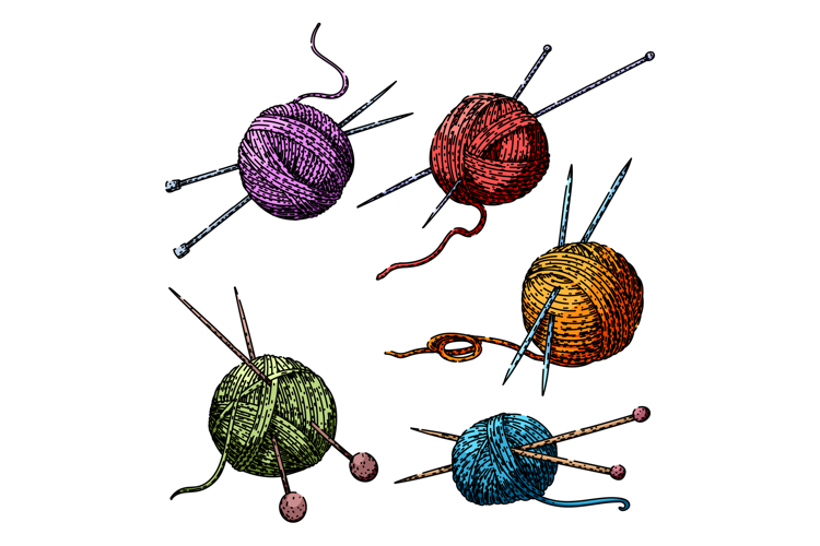 yarn needle knit set sketch hand drawn example image 1